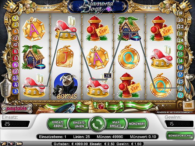 Für deinen Vierbeiner wäre ein bisschen mehr Luxus auch ganz schick? Bei Gewinnen bis zu einer halben Million Euro dürfte durchaus das eine oder andere Glitzerhalsband für ihn drin sein. Um überhaupt Geld abstauben zu können, musst du natürlich wie immer welches investieren. Es genügen glücklicherweise schon ein paar Cent für den Anfang. Erscheint dir selbst das zu viel, dann gibt es immer die Alternative der Demoversion, die du im Online Casino gratis zocken kannst. Einige eindrucksvolle Runden dürften genügen, dich von den diamantenen Wauzis und ihrem Hand zum Geld ausschütten zu überzeugen. Das erforderliche Spielgeld wird dir im Casino Euro gestellt, sobald du ein eigenes Spielerkonto besitzt. Nachholen lassen sich Einzahlungen jederzeit.